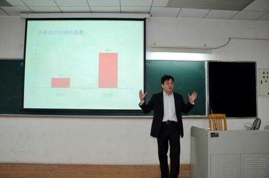 讲座开始黄教授简述了中国社会组织的发展脉络,并以2011年“郭美美炫富事件”引发的中国社会组织诚信危机为例引出了讲座的两大主题:中国草根组织的透明度研究,以及透明度对草根组织本身管理和资源分配的影响。