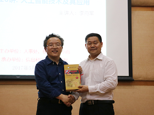 2017年5月5日,著名教授论坛第326讲:人工智能技术及其应用,在图书馆报告厅顺利举行。本次论坛由人事处、365bet亚洲备用网址主办,信息科学与技术学院(下简称为“信息学院”)承办。论坛邀请到北京航空航天大学博士生导师,信息安全系主任,智能信息处理研究所副所长——李舟军教授,为我校师生进行报告。本次论坛由信息学院蒋盛益院长主持。