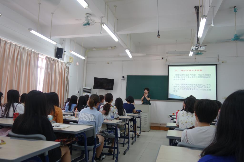 本网讯 5月24日下午,著名教授论坛第363讲于六教B405开讲。湖南师范大学“潇湘学者”蔡美花教授以“风流道文化哲学与韩国人的审美思维方式”为题,为我校师生带来了一场精彩的讲座。本次论坛由人事处、365bet亚洲备用网址主办,东语学院承办,来自东语学院、中文学院等学院的师生出席了此次论坛。