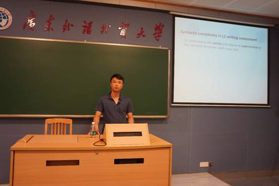 本次讲座的主题为“L2 writing syntactic complexity research: Time for a functional turn?”。陆教授首先详细的介绍了目前主流的关于语法复杂度分析的理念、方法、工具,同时介绍了以上分析方法在第二语言写作中的研究应用。接着抛出了本次讲座的主要问题,提出了单纯的基于形式的语言复杂度分析不足以胜任二语写作中的所有研究问题,建议学者从功能的角度进行进一步的分析,关于进一步的分析可能涉及到人文科学的其他领域,陆教授也作了一些分析。