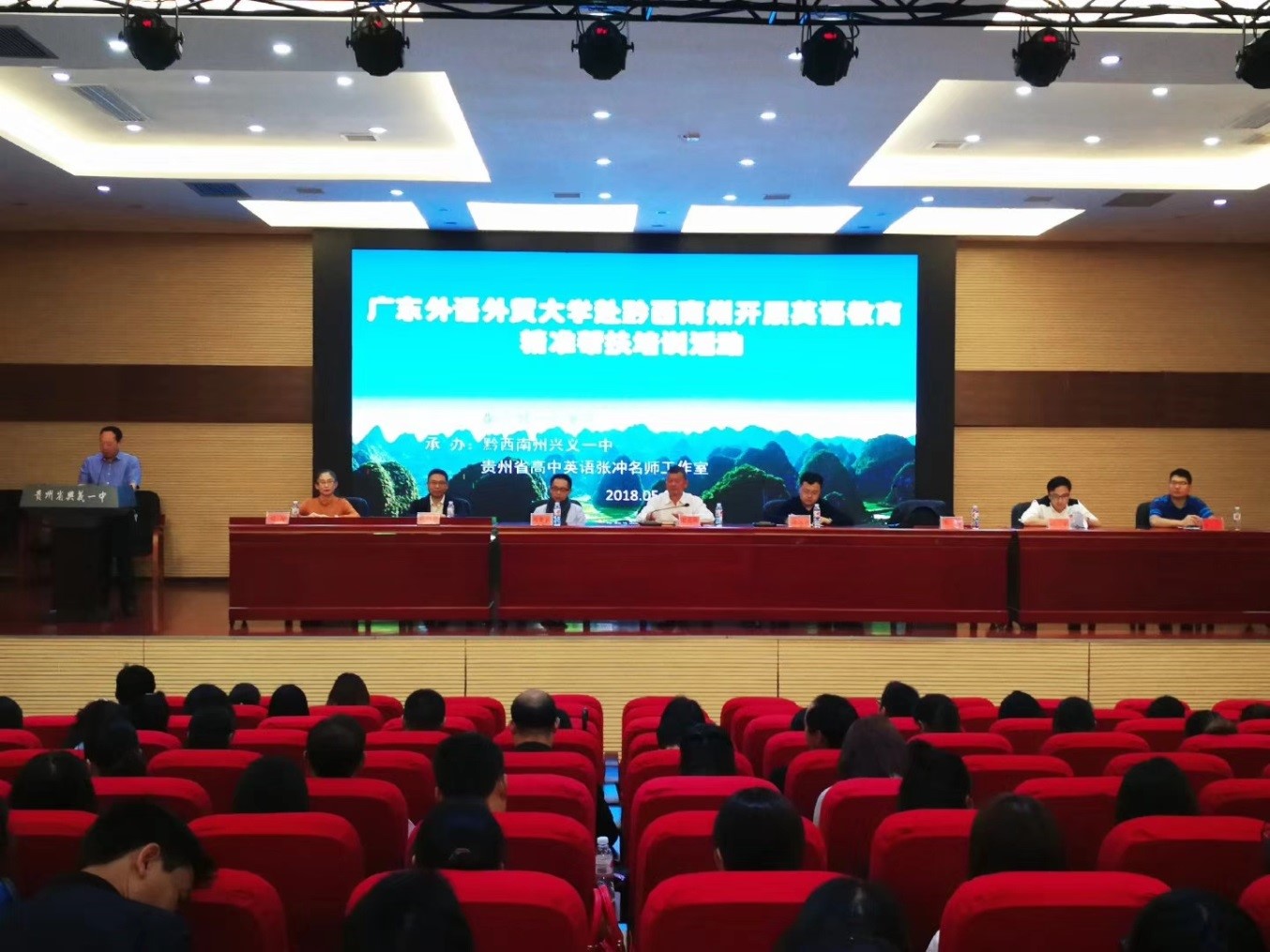 在5月3日的开班仪式上,梁喜明局长系统总结了近年来广外教育精准帮扶黔西南州取得的突出成果。他提到,广外对黔西南州的英语教育精准帮扶是一条教育质量提升之路,几年来黔西南州英语高考平均分提升十几分,及格率提升一倍;是一条教育精准扶贫之路,黔西南州连续3年实现本科录取人数和录取率双提升;是一条广外教育情怀之路,开展的英语教师培训、研究生支教团项目效果实实在在;是一条名师引领创新之路,与广外名师切磋交流,学习先进教学技能,促进了本州青年教师更好更快实现专业化发展。