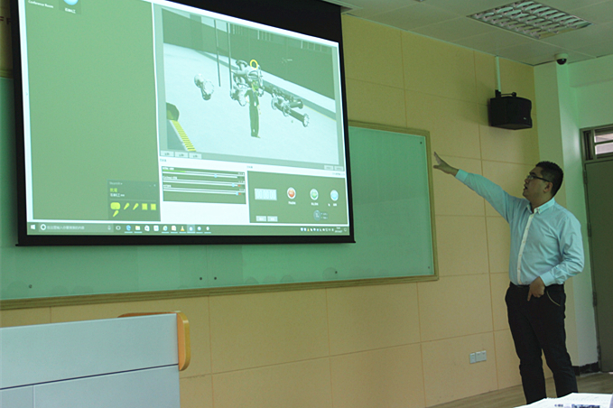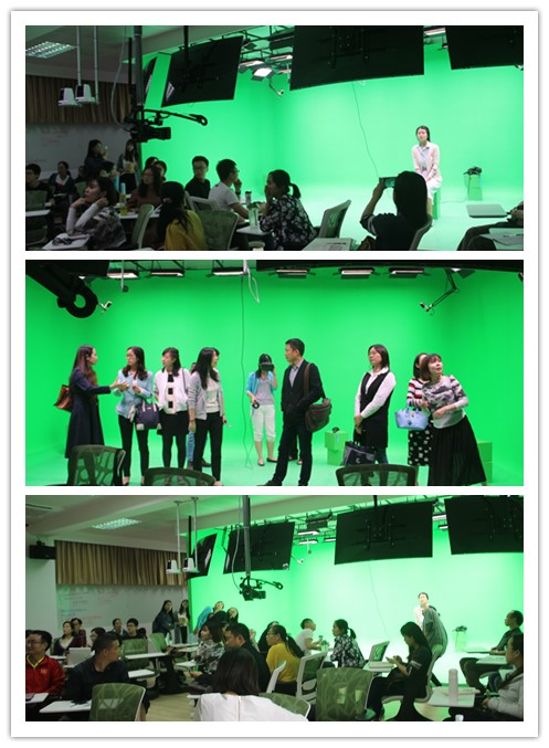 古煜奎及其团队对虚拟仿真实验室的功能和应用进行了介绍和演示。他认为,教育特别是外语教育的信息化应用主要体现在平台化、移动化、VR化和智能化。实验室利用先进的虚拟仿真和虚拟现实技术与多媒体设备相结合,实现了虚拟情境实训、情景微课录制、课堂实况录播、虚拟现实实训四大功能。现场的老师们纷纷对“高大上”的实验室表示很感兴趣,对设备的使用也非常好奇。不少老师参观和学习后表示,要结合教学活动和学科建设,以实验室为依托,创新微课拍摄方式。