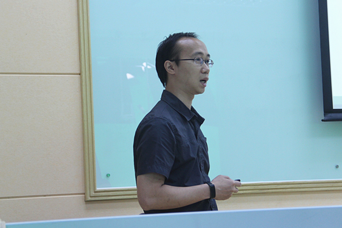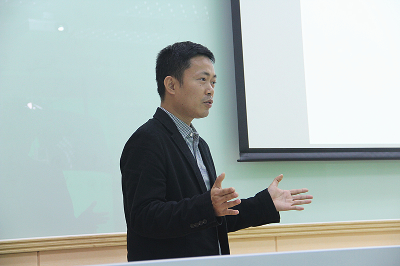 作为第二届微课比赛一等奖获得者,刘亮星来到了现场为此次参赛的老师分享微课比赛的经验。他用攀岩来比喻参加过微课比赛的心路历程,虽然攀登的过程很苦很累,但达到终点时将会很有成就感。他从微课制作和设计两大方面进行了介绍,在制作上,他认为微课有三个“不等于”:即不等于课堂录像、不等于把课堂录像截短和不等于课堂讲课。他讲到,每个微课只讲一点内容,所以它不是万灵药,因此更需要系列化的作品;在设计上,短小精悍、逻辑性强、突出重点、讲授明快是关键。