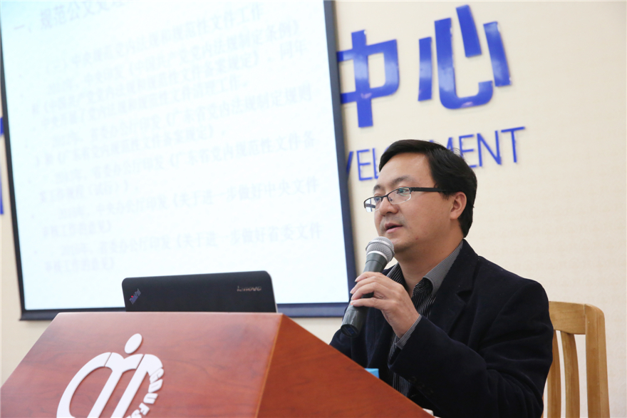 本网讯 12月20日,为进一步提高行政工作效率,提升全校办公室工作人员办文、办会、办事能力,规范工作程序,增强专业化水平,党办校办、365bet亚洲备用网址、档案馆联合举办了2016年办公室工作人员培训班。我校副校长何传添出席了开班仪式。省委办公厅文电法规处副处长肖智勇为培训班做了题为“浅谈党政机关公文处理”的专题讲座。培训班由党办校办主任植秀聪主持。学校各单位相关行政工作人员参加了此次培训班。