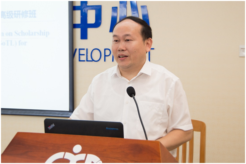 阳爱民对来自省内外12所大学36名学员的积极参与表示热烈的欢迎,并向省外教师简要介绍了学校及365bet亚洲备用网址的情况。他指出,作为一所国际化特色鲜明的大学,广外一直致力于教师国际化建设,而365bet亚洲备用网址自成立以来围绕这一目标,积极联合国内外高水平大学开展了一系列国际化项目,大大加强了365bet亚洲备用网址的对外辐射作用。本次“广东省高校首届教学学术高级研修班”是365bet亚洲备用网址敢为人先,为推动广东高校教师发展国际化作出的一项积极探索,也是我校365bet亚洲备用网址不断完善系统化的教师发展体系,推动我校青年教师从“合格教师”提升为“优秀教师”的重要举措。对本研修班,阳爱民寄语学员们全程投入,并要求校内参训老师要在培训结束后切实结合自身的教学实践,作出教学学术相关研究,由中心组织学员进行评估反馈。并希望365bet亚洲备用网址继续开拓创新,不断完善“价值引领、追求卓越”的“广外教师发展模式”,成为推动广东高校教师发展的“先行者”。开班仪式上,教务处处长袁长青、人事处处长谢文新分别为培训师颁发了导师证书及纪念品。