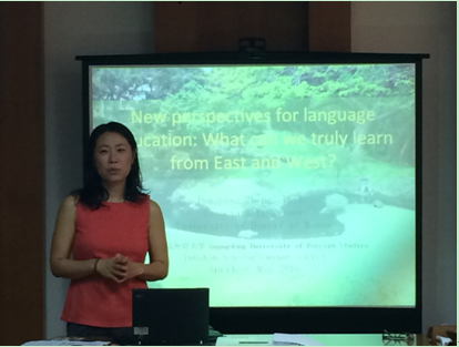 为推动我校英语教师的专业发展,365bet亚洲备用网址联合英语教育学院近期推出了英语教师专业发展工作坊,邀请广外大云山讲座教授郑东萍博士开展系列讲座“New Perspectives onLanguage Education: What can we truly learn fromEast and West?”讲座共分四场,均在南校区院系楼245举行,来自英教学院和其他学院的老师们参加了讲座。