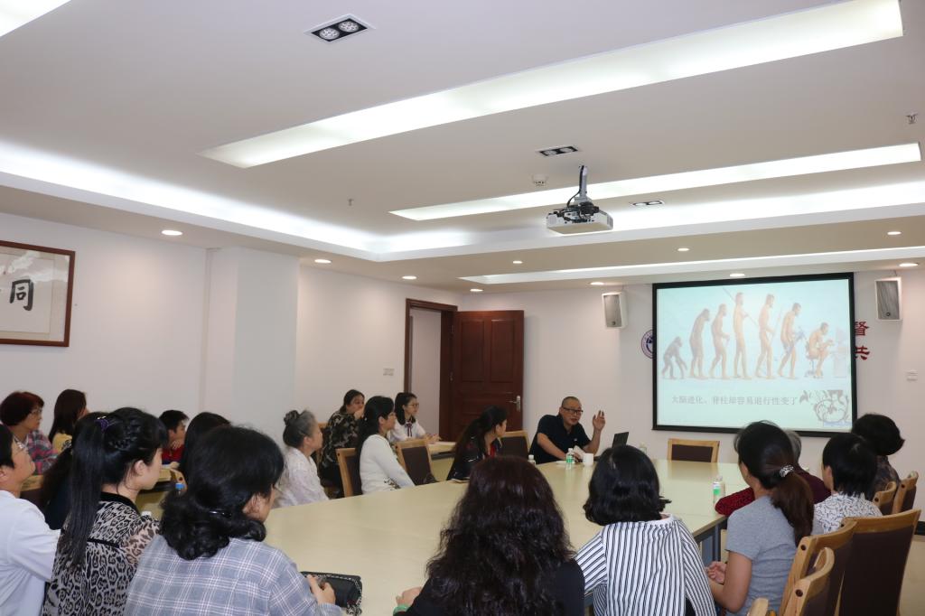 理论知识讲解完以后,张晓主任与教职工们进行了愉快的互动,带领大家一起做“踮起脚尖,左顾右盼”简而易行的预防方法,建议大家自己在家里可以经常练习。讲座结束后,许多教职工向张主任请教了一些常见的健康问题,并交流了保健心得。