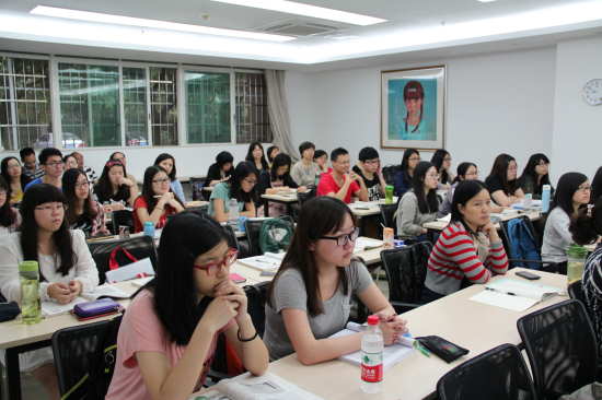 各学院的教师在观看了康老师的教师示范课之后,随后展开了教学专题研讨会。对于康蕾的全英教学示范课,各学院的教师都赞不绝口。其中,商英学院的杨老师特别提到了组织课堂的方法,并认为其进行方式很值得借鉴。随后,教师们纷纷发表了对全英或双语教学的看法,其中关于平衡语言和专业的问题引发热议。部分教师表示,对于非英语专业的同学来说,不能纯粹为了和国际接轨而开设全英教学班。然而,对于广外学子来说,英语水平一直是较之其他学校学生的优势;对于不断追求国际化的广外来说,英语教学水平的提高也是必然趋势。部分教师认为在广外应该提高全英或双语的教学水平,所以应该注重提高教师自身的英语水平和教学水平。