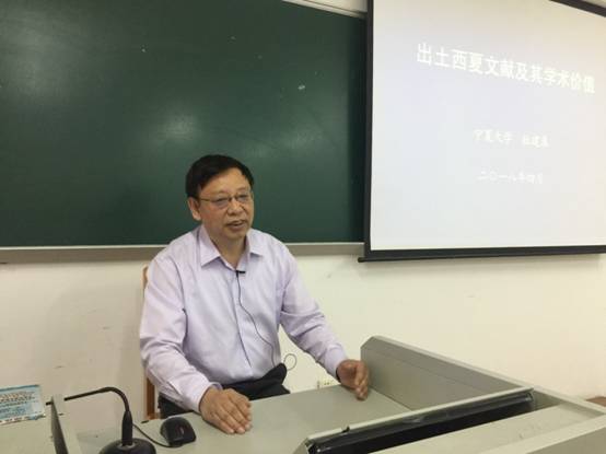 本网讯 2018年4月14日上午十点,由人事处、365bet亚洲备用网址主办,词典学研究中心承办,中心主任田兵教授主持的著名教授论坛第356讲:“出土西夏文献及其学术价值” 在六教学楼B406教室,邀请宁夏大学西夏学研究院院长杜建录教授作了精彩讲座。