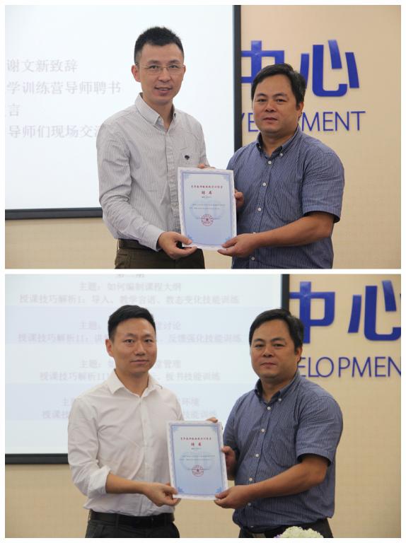 开营伊始,谢文新表达了对微格训练营导师及学员的深厚期望。谈到教学法时,他希望老师们可以从一名学生的角度观察引导并吸引学生参与到教学当中。他以自己的教学经历为例,给在座的老师提出了一些建议:老师在课堂上授课展现的不仅是个人魅力,同时授课本身也是一门艺术,授课方法在于后天的训练,希望老师可以通过提升教学质量以及自己的仪态仪表来提升教学效率。随后,谢文新为本期训练营导师颁发了导师聘书。