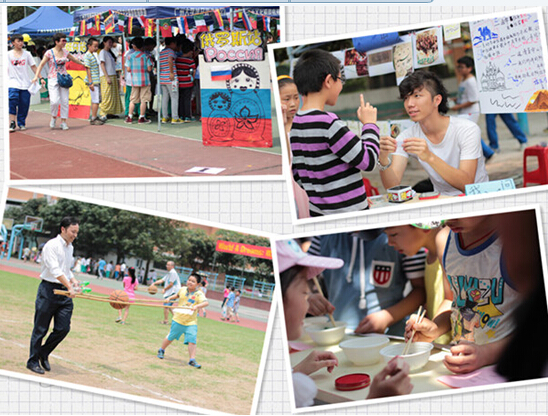 本网讯 5月30日上午,为迎接六一儿童节,“World & Funs国际文化嘉年华”活动以及“World & Dreams”为主题的我校青年教职工亲子游园活动在我校举行。这是广外365bet亚洲备用网址分别与广外幼儿园、广外附校联合举办的系列活动。